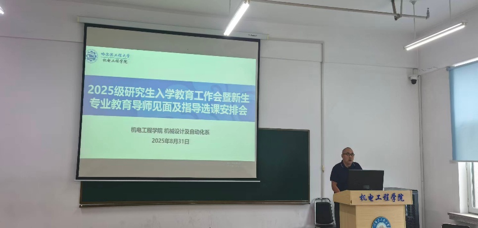 为深入贯彻机电工程学院2025级研究生新生入学教育工作会精神,落实学院统一部署,机械设计及自动化系于2025年8月31日15时,在61号楼4112会议室组织召开2025级研究生新生入学教育工作会。会议由系党支部书记李立全主持,系主任史冬岩,副主任聂重阳、董立强,研究生专职辅导员刘鸣,教师代表黄嘉奇、于美琪等出席会议。