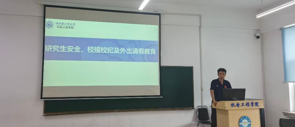 研究生专职辅导员刘鸣面向全系新生开展安全教育、校规校纪等宣讲,重点讲解了网络安全注意事项,组织学习了《研究生手册》中关于学籍管理、纪律处分等规定,并详细解读了《研究生长期外出管理办法(试行)》、《研究生因公外出管理流程》中关于请假的分类与具体要求,帮助新生准确把握制度内容,明确行为规范。
