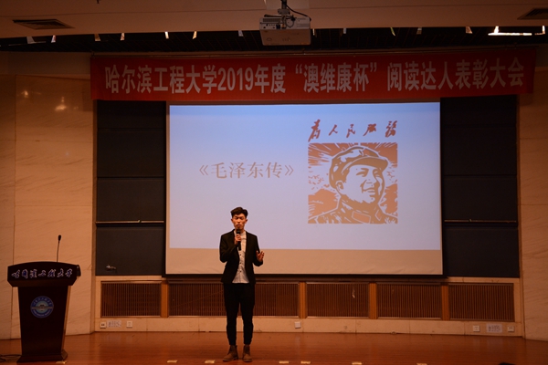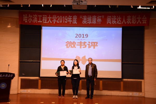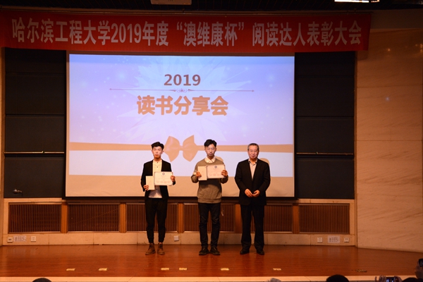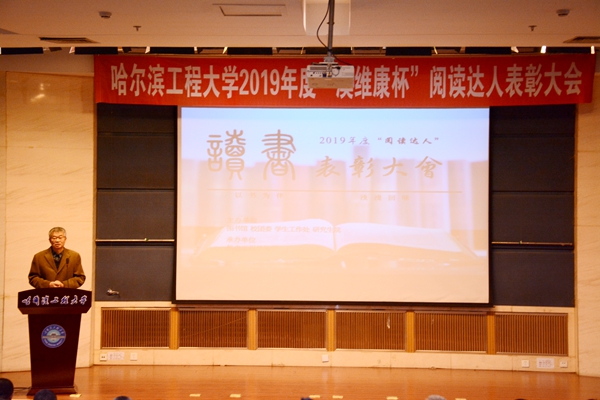 为开阔阅读视野,体会阅读的乐趣,让每一位同学与书为伴,养成爱读书、会读书、读好书的习惯。哈尔滨工程大学机电工程学院在“世界读书日”到来之际,于图书馆二楼学术报告厅承办第六届“澳维康杯”阅读达人表彰大会。哈尔滨工程大学党委副书记夏桂华,青岛澳维康生物科技工程有限公司董事长、我校84级校友熊旭波,哈尔滨工程大学校友会理事、我校84-811校友代金生,图书馆馆长赵旦峰,党委学工部部长吕开东,校团委书记史波,机电工程学院党委书记沈红宇,图书馆副馆长陆萍,机电工程学院党委副书记牟道富出席本次活动。
