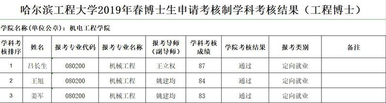 以上为机电工程学院2019年春季学期博士申请考核制招生(工程博士)学科考核结果公示,若有疑义,请联系机电工程学院教务办公室82569710反映。最终考核拟录取结果以学校考核后公布结果为准。 机电工程学院 2019年5月13日