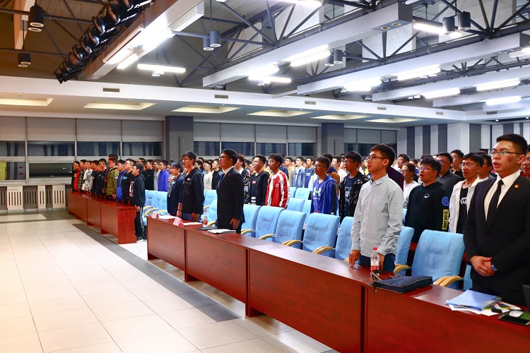 18时30分,开学典礼在2019级本科生高亢、激昂的国歌声中拉开序幕。
