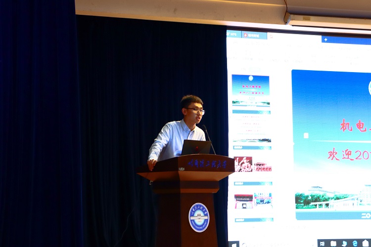 短暂休息后,牟道富同志为新生做学院和专业介绍报告。从我校校史讲到机械专业的发展史,从大一适应学习生活讲到毕业选择。在牟道富的引导下,新生对自己专业有了更深的理解,对自己的未来也开始了思考规划。最后,牟道富向新生表达了自己的期望和祝愿。
