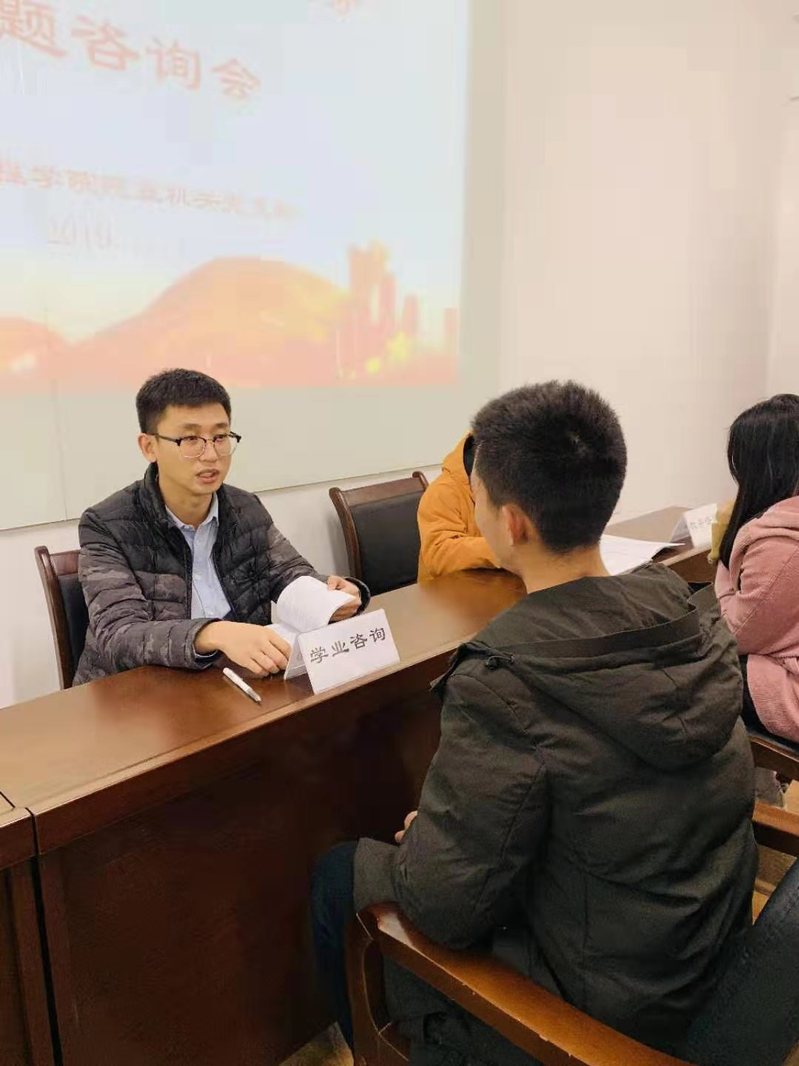 为深入推进“不忘初心、牢记使命”主题教育,践行“为师生做实事做好事”的服务理念,弘扬“奉献、友爱、互助、进步”的志愿服务精神,帮助大学生尽快适应大学生活学习节奏、排解心理压力、深入了解校院各级政策,机电工程学院院直机关党支部于2019年11日1日开展了“助力成长、悉心服务”主题咨询会。
