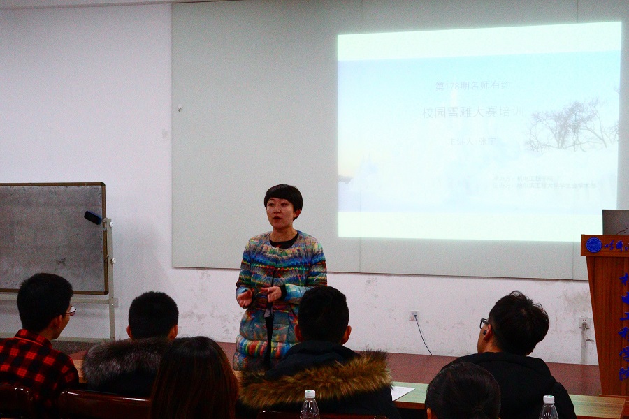 12月12日晚,机电工程学院于61号楼3096室开展雪雕大赛培训工作。本次培训工作由机电工程学院团委书记王茜主持,活动邀请机电工程学院工业设计专业讲师张宇为大家开展专业培训,共有140余人参加培训。