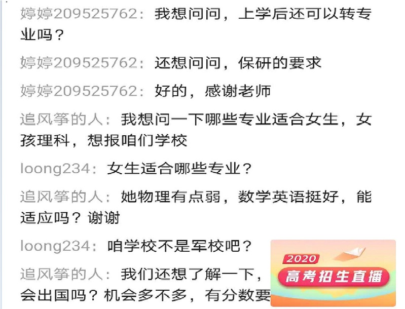 全面而不失重点、严谨又略带风趣的直播吸引了大量考生家长的关注,直播间人数长时间保持数千人观看。更有很多考生家长提出了关心的问题,作为主播的牟道富同志均做了全面的解答。学院还建立了陕西高考招生咨询QQ群,并在直播中公布了群号和二维码,方便随时解答考生家长们关心的问题,进一步将高考咨询服务工作做到实处。
