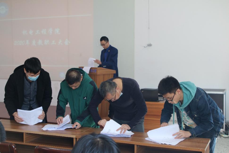 首先进行补选学校第六届教职工代表大会暨第八届工会会员代表大会代表和进行机电工程学院工会委员换届选举工作。全体教工举手表决通过总监票人、监票人建议名单。