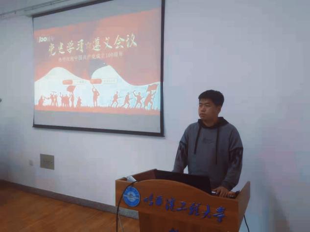 为庆祝中国共产党建党100周年,深入贯彻落实习近平总书记在党史学习教育动员大会上的重要讲话精神,机电工程学院秉承传承红色基因,践行红色使命的精神,机电工程学院辅导员于超群为团委学生会主要成员进行了机电工程学院第四期党史宣讲会。