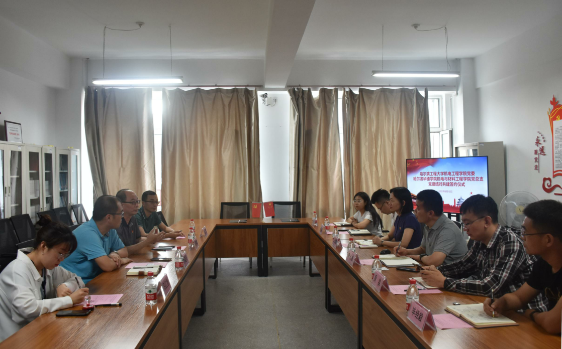 会上,双方分别介绍了学院发展现状、党建工作,并就接下来两家单位的党建共建等工作进行了深入探讨和交流,并签署了哈尔滨工程大学机电工程学院与哈尔滨华德学院机电与材料工程学院党建共建合作框架协议。