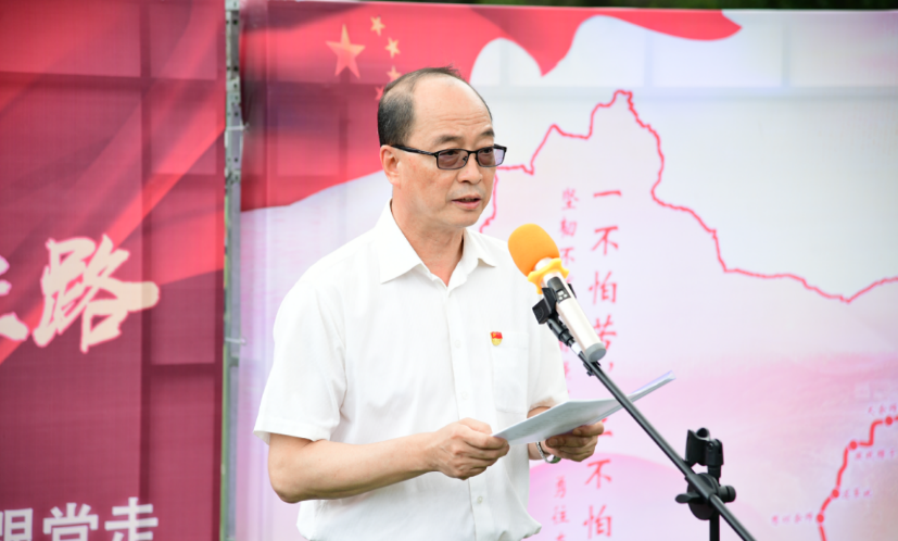 活动开始,学院党委书记吕春雷为本次活动致辞。他指出,2021年是中国共产党成立100周年,要求全党学史明理、学史增信、学史崇德、学史力行。今天我们在这里举行“建党百年学党史,百人重走长征路”党史学习教育活动,一同穿越历史的沧桑巨变,回望那段苦难和辉煌。他对学院全体师生提出三点希望:一是要坚定共产主义远大理想和中国特色社会主义共同理想,为理想信念而努力奋斗;二是坚定四个“四个自信,为中国特色社会主义事业而努力奋斗;三是要心怀“国之大者”,把握大势,敢于担当,善于作为,为服务国家富强、民族复兴、人民幸福贡献力量。