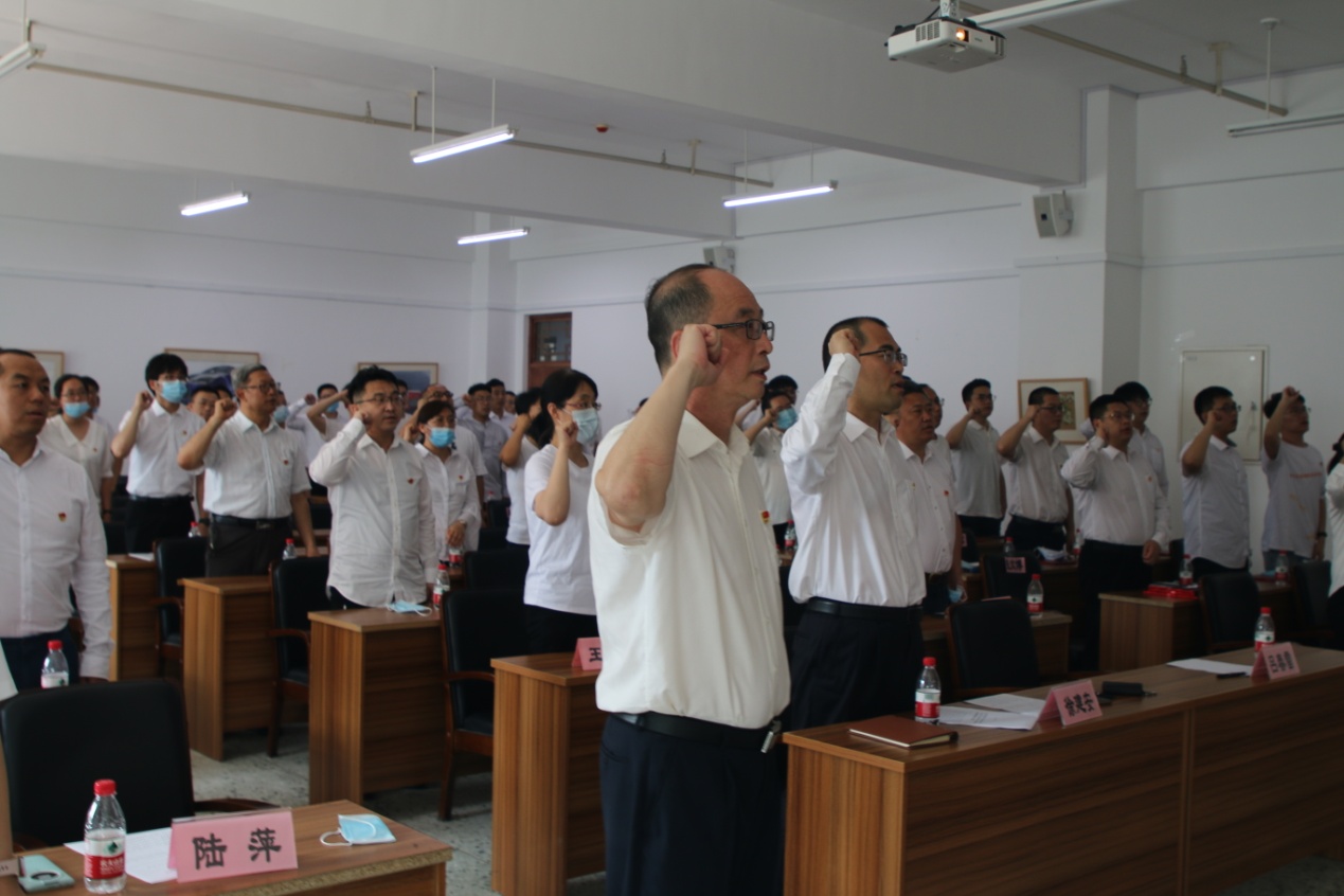 最后,全体党员在学院党委书记吕春雷的带领下,高举右拳,面向党旗,集体重温入党誓词。与会党员纷纷表示,通过重温入党誓词,再一次体会到作为共产党员的责任感和使命感,我们应以党员的身份为荣,以党员的标准严格要求自己,以积极进取的心态和创先争优的精神践行入党誓词,充分发挥先锋模范作用,在岗位上发光发热。