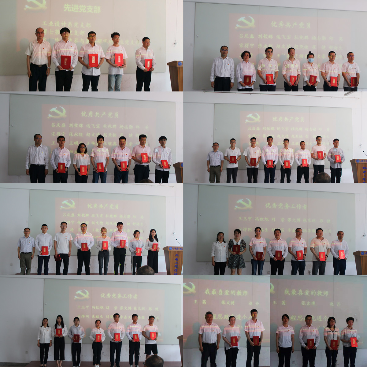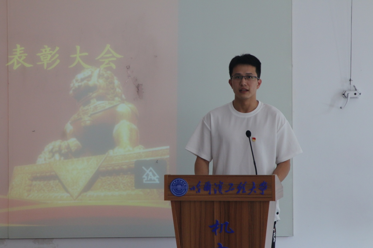 学院领导为先进党支部、优秀共产党员、优秀党务工作者、我最喜爱的教师和课程思政先进个人颁奖。优秀党务工作者教师代表张文博、优秀共产党员学生代表刘晓峰发言。