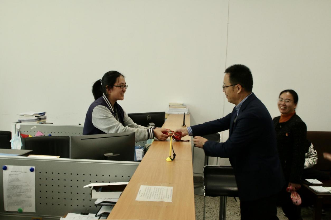 在61号楼,姚郁推开每个学院机关办公室的门,为正在工作岗位上努力奉献的女教工们送上节日贺礼,并亲切交流,了解大家工作生活情况,并致以节日的美好祝贺。姚郁表示,女教工撑起了学校发展的“半边天”,学校的快速发展离不开每一位包括女教工在内的全体师生的共同努力奋斗,无论是抗击新冠疫情还是学校改革发展,女教工们展优势传美德,立足岗位兢兢业业。祝福女教工们在自己的节日里身体健康,工作顺利。