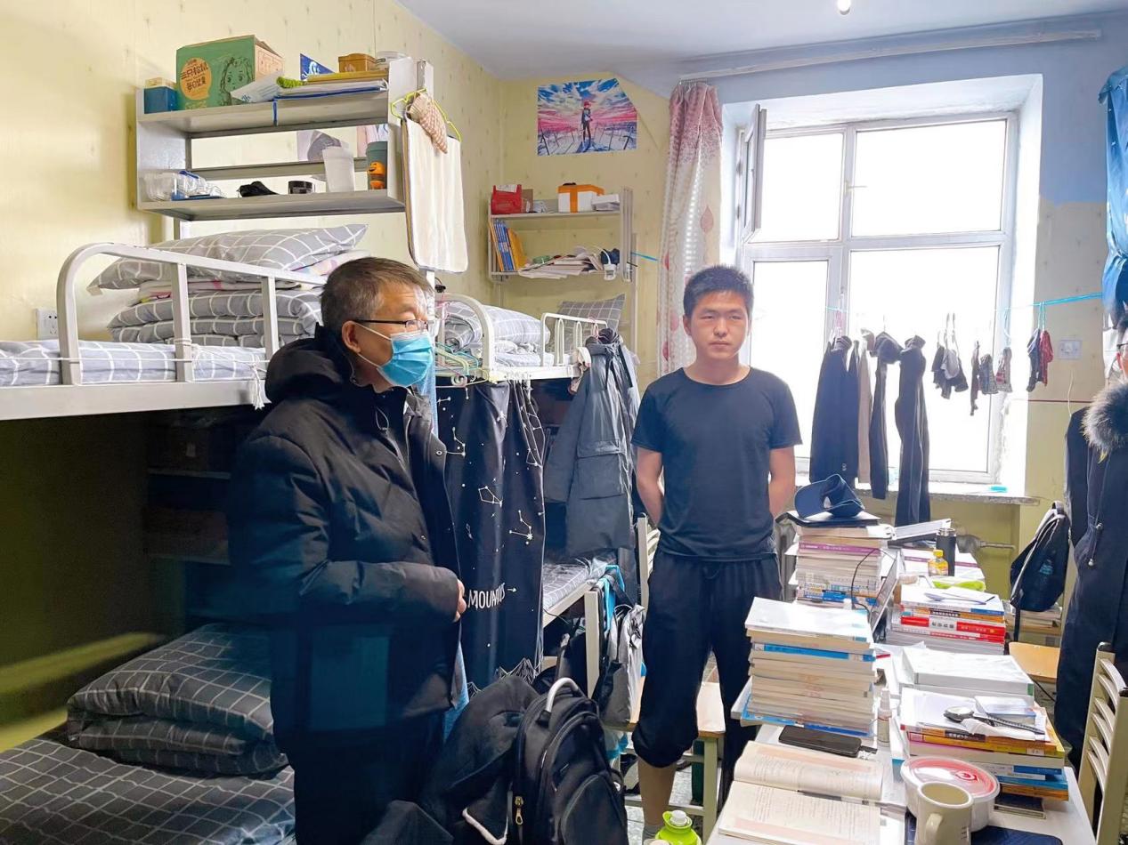 走访寝室期间,夏桂华与学生亲切交谈,询问学生日常生活状态,关心学生线上授课效果,叮嘱学生疫情期间做好个人防护,严格遵守校园疫情防控管理规定。在走进129寝室时,夏桂华向所有人讲解道,这个房间曾是李安东上将在哈军工读书时所住的寝室,希望大家都能继承和发扬哈军工精神,牢记“以祖国需要为第一需要,以国防需求为第一使命,以人民满意为第一标准”的价值追求。“下学期读了研究生,一定要在科研方面潜下心,扎下根,努力突破自我,取得新成绩。”在听到一名大四学生成功保研至本校后,夏桂华这样鼓励学生。
