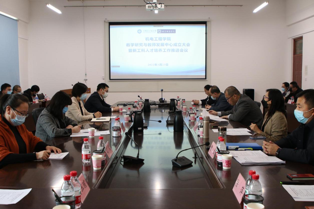 2022年3月23日下午,机电工程学院在61号楼3045会议室召开学院教学研究与教师发展中心成立大会暨新工科人才培养工作推进会议。会议采用“主会场+分会场”视频会议形式召开,本科生院常务副院长耿敬、研究生院副院长程建华、本科生院副院长张红岩、本科生院教育评估与教师发展中心闫雪出席会议。机电工程学院全体班子成员、各基层学术组织负责人、教学研究与教师发展中心成员线下参加会议,机电工程学院全体教师线上参加会议。