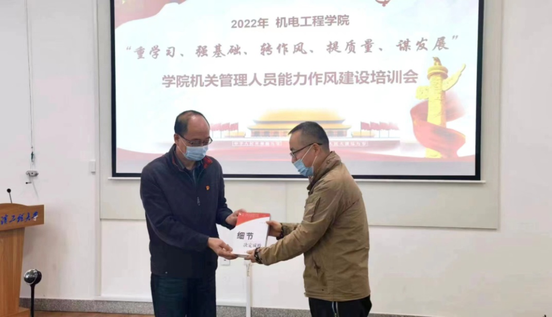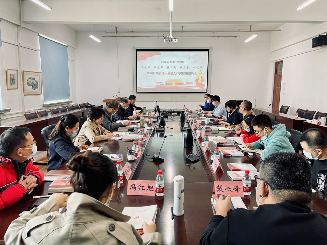 为贯彻落实学院2022年“重学习、强基础、转作风、提质量、谋发展”活动方案总体部署,以更有力的措施推动学院机关解放思想、提升能力、转变作风,机电工程学院于5月12日下午召开机关管理人员能力作风建设培训会,本次培训由党委书记吕春雷、党委副书记侯磊主讲,学院领导班子成员、机关全体人员参会,行政副院长陆萍主持会议。