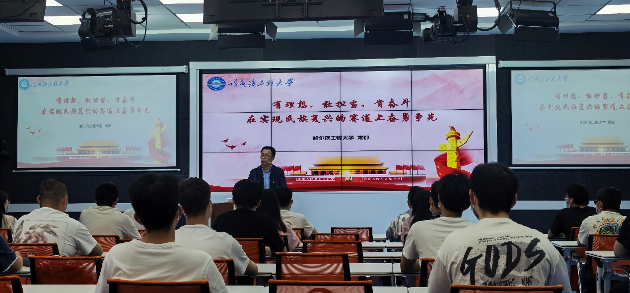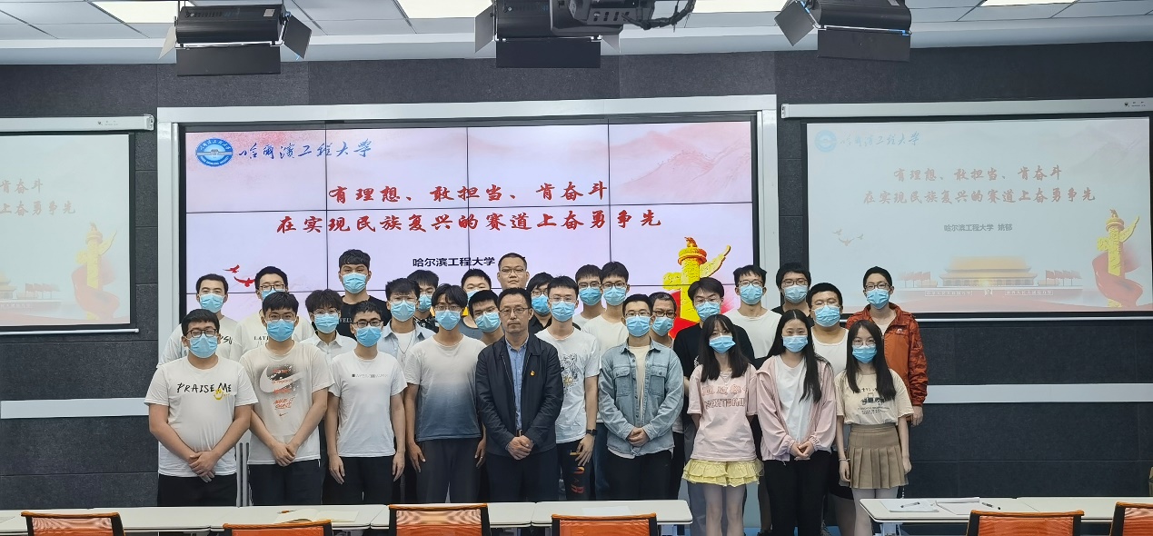 5月20日,校长姚郁在21B305教室为20190714班宣讲习近平总书记在庆祝中国共产主义青年团成立100周年大会上的讲话精神,并以《有理想、敢担当、肯奋斗,在实现民族复兴的赛道上奋勇争先》为题进行宣讲。