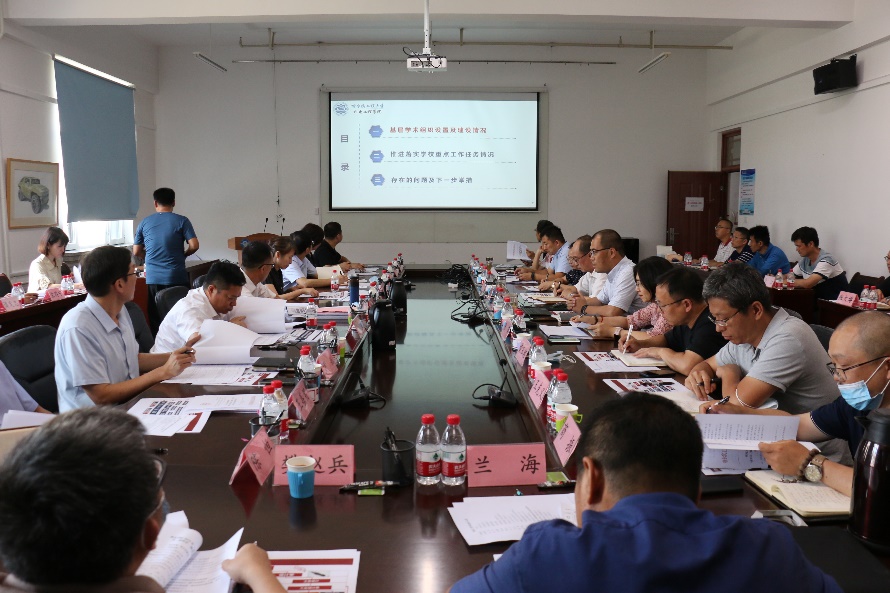8月15日下午,校长姚郁调研走访学院,围绕学院推进落实新一轮“双一流”建设和“十四五”规划重点建设任务的总体思路和阶段性成效,年度重点工作、基础性评价和关键业绩评价指标任务推进落实情况,基层学术组织设置及建设情况等内容进行座谈交流。党委常委、组织部部长兼党校常务副校长张石梅,校长助理严汝建陪同调研。学院领导班子成员;各基层学术组织负责人、党支部书记;机关四办主任等出席会议。