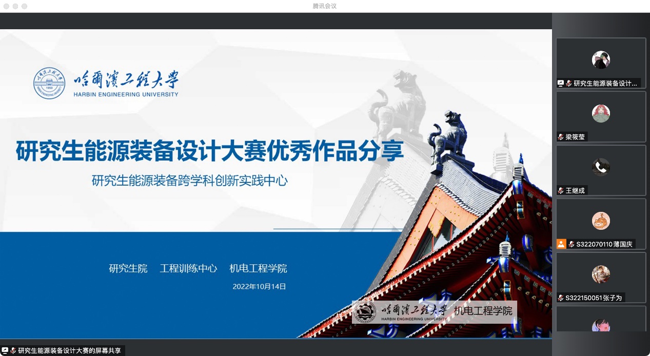 10月14日,由研究生院、工程训练中心和机电工程学院联合创办的研究生能源装备跨学科创新实践中心开展第二次专题讲座。实践中心本次邀请哈尔滨工程大学第八届研究生能源装备设计大赛三支优秀获奖团队作题为《研究生能源装备设计大赛优秀作品分享》的专题讲座。