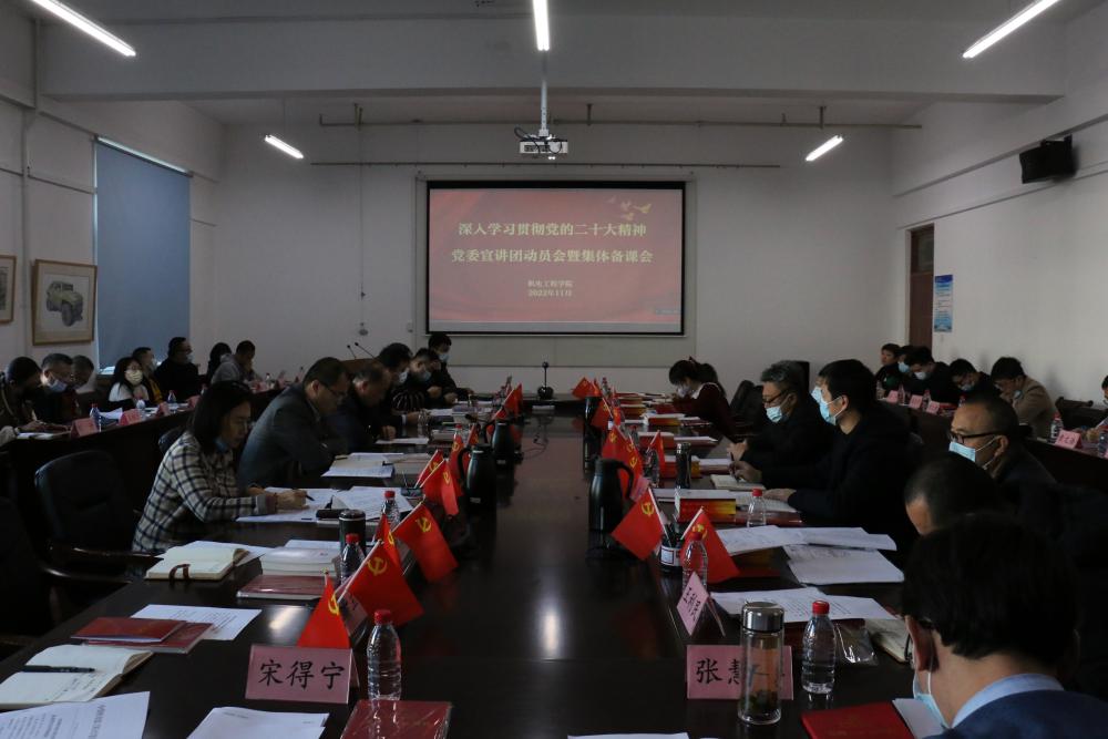 2022年11月21日上午,机电工程学院召开学习贯彻党的二十大精神党委宣讲团动员会暨集体备课会。学院领导班子成员、党委委员;教工党支部书记;辅导员、研究生辅导员;学生党支部书记;机关全体人员参加会议。党委副书记、院长徐建安主持会议。
