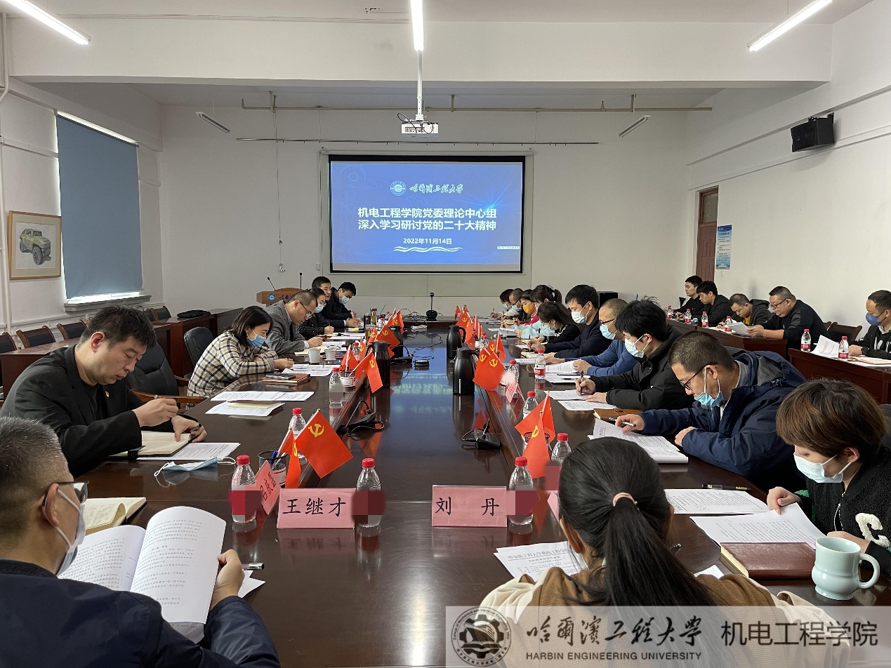 2022年11月14日,机电工程学院党委理论中心组开展扩大学习,深入学习研讨党的二十大精神。学院党委理论学习中心组成员;基层学术组织党支部书记;机关人员参加学习。党委书记吕春雷主持学习。