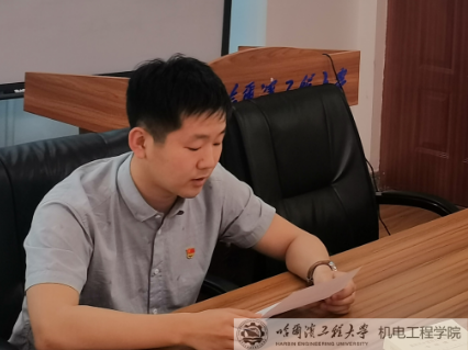 机械设计及自动化系党支部宣传委员董立强同志传达学习《机电工程学院党委关于深入开展学习贯彻习近平新时代中国特色社会主义思想主题教育的工作方案》。