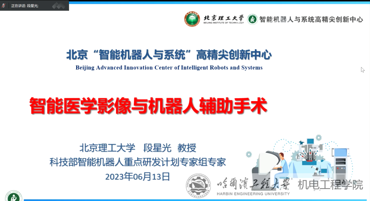 2023年6月13日,机电工程学院科协成功举办了第二十五期青年学术论坛。本次论坛邀请到了北京理工大学的段星光教授,就"医疗机器人中的医学影像与机器人技术"进行了精彩的报告,会议采取线上的形式交流。学院相关研究团体成员及硕博研究生参加此次会议,会议由我院王克义副教授主持。