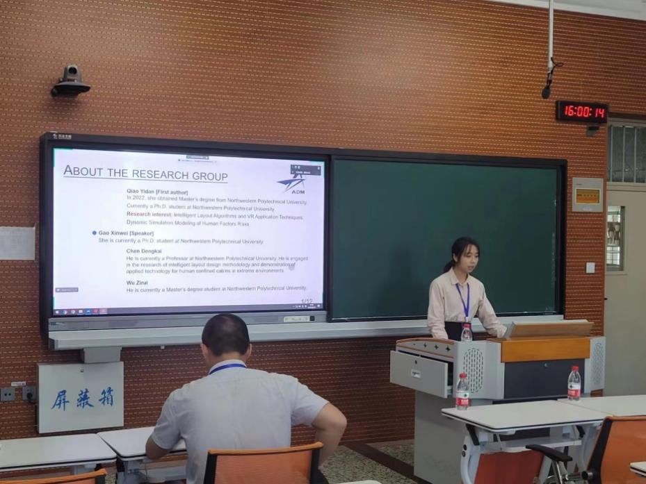 西北工业大学博士生高馨薇做主题为“Design method of cabin layout for transparent manned submersible driven by motion capture system in virtual reality environment”的学术报告。