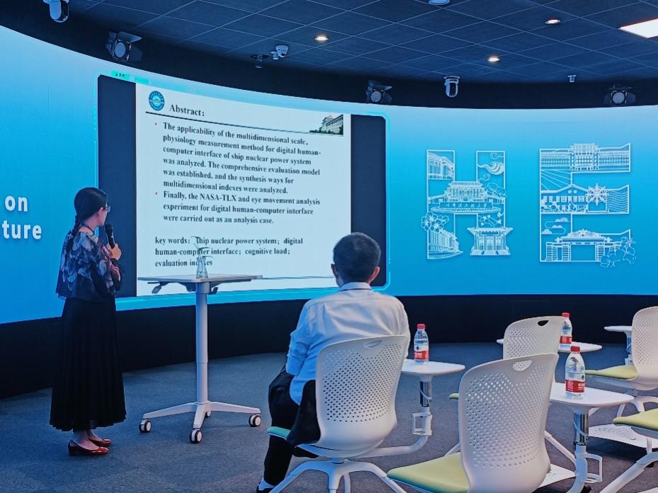 机电工程学院工业设计系老师张晶玲老师做主题为“Research on evaluation for cognitive load of digital human-computer interface for marine nuclear power system”的学术报告。