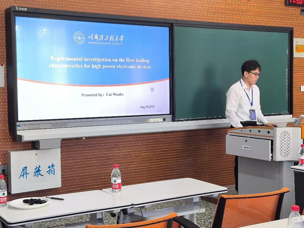 机电工程学院硕士研究生崔文博做主题为“Numerical investigation on Optimization of Thermal Conduction Structure of phase change material-based heat sink for multiple chips”的学术报告