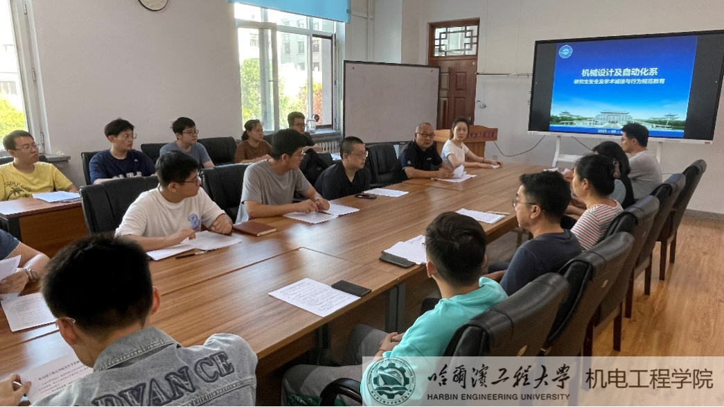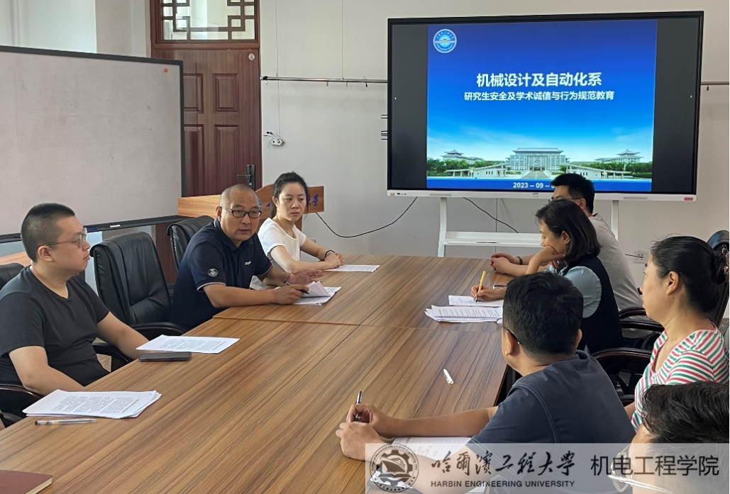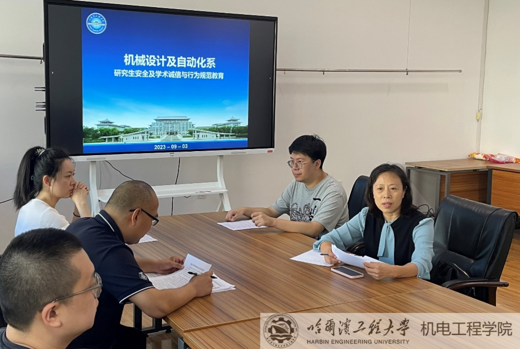为贯彻落实机电工程学院2023级研究生新生入学教育工作会精神,按照学院统一部署,机械设计及自动化系于2023年9月3日上午9:30分,在61号楼2048会议室召开2023级研究生新生安全责任及学术诚信教育工作会。会议由机械设计及自动化系党支部书记李立全同志主持,系主任史冬岩教授及青年教师代表、2020级优秀博士研究生代表崔进同学以及2023级研究生新生出席此次会议。