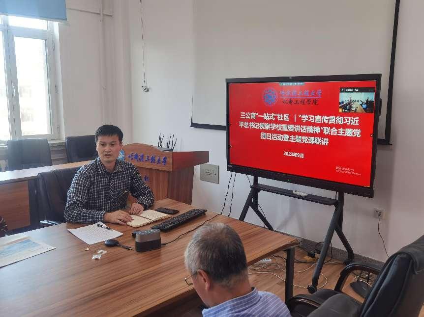 主题党课联讲,智能制造工程系党支部组织委员、兼职研究生辅导员宋德宁结合学生工作,宣讲习近平总书记视察哈尔滨工程大学重要讲话精神。他强调:作为哈尔滨工程大学学子,我们要充分发扬“哈军工”优良传统,紧贴强国强军需要,积极投身国防领域和船舶行业贡献力量,交出让党和人民满意的答卷。