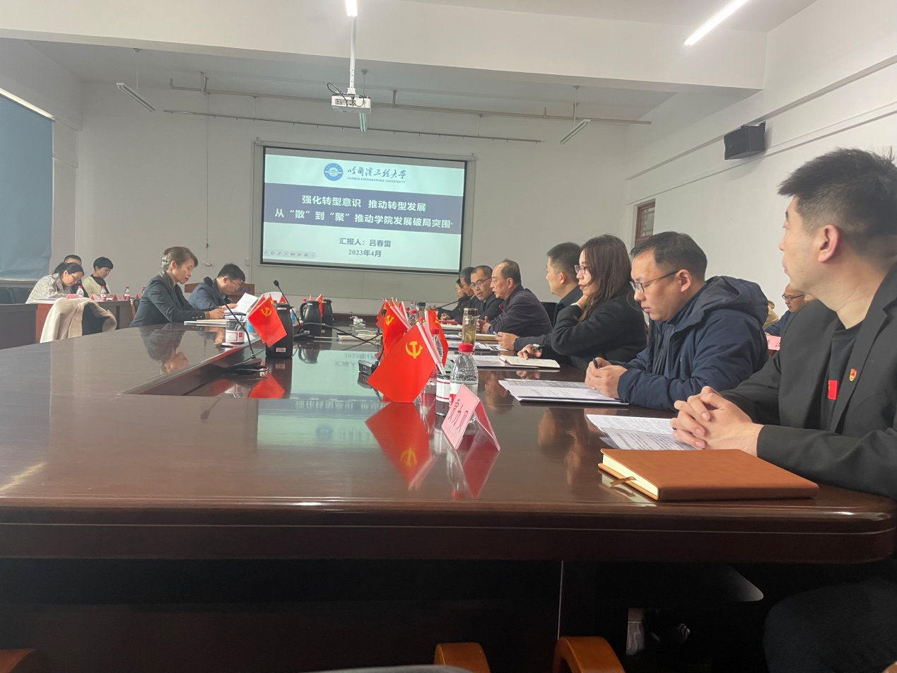 会上,吕春雷以“从散到聚推动学院发展破局突围”为主题作党建工作汇报。他提出,在转型过程中,我们必须回答好“继续坚持什么、抛弃什么、创新什么”发展问题。全院上下讨论的不是该不该转型问题,而是解决“转什么?怎么转?谁来转?”的问题。学院党委坚决贯彻落实“学思想、强党性、重实践、建新功”主题教育动员部署会精神,坚决将学校党委意志和要求不折不扣贯彻到底。充分发挥学院党委政治核心作用,从“散”到“聚”,找准坐标系,抓好三支队伍,突显组织功能,营造良好生态,助力学科发展。